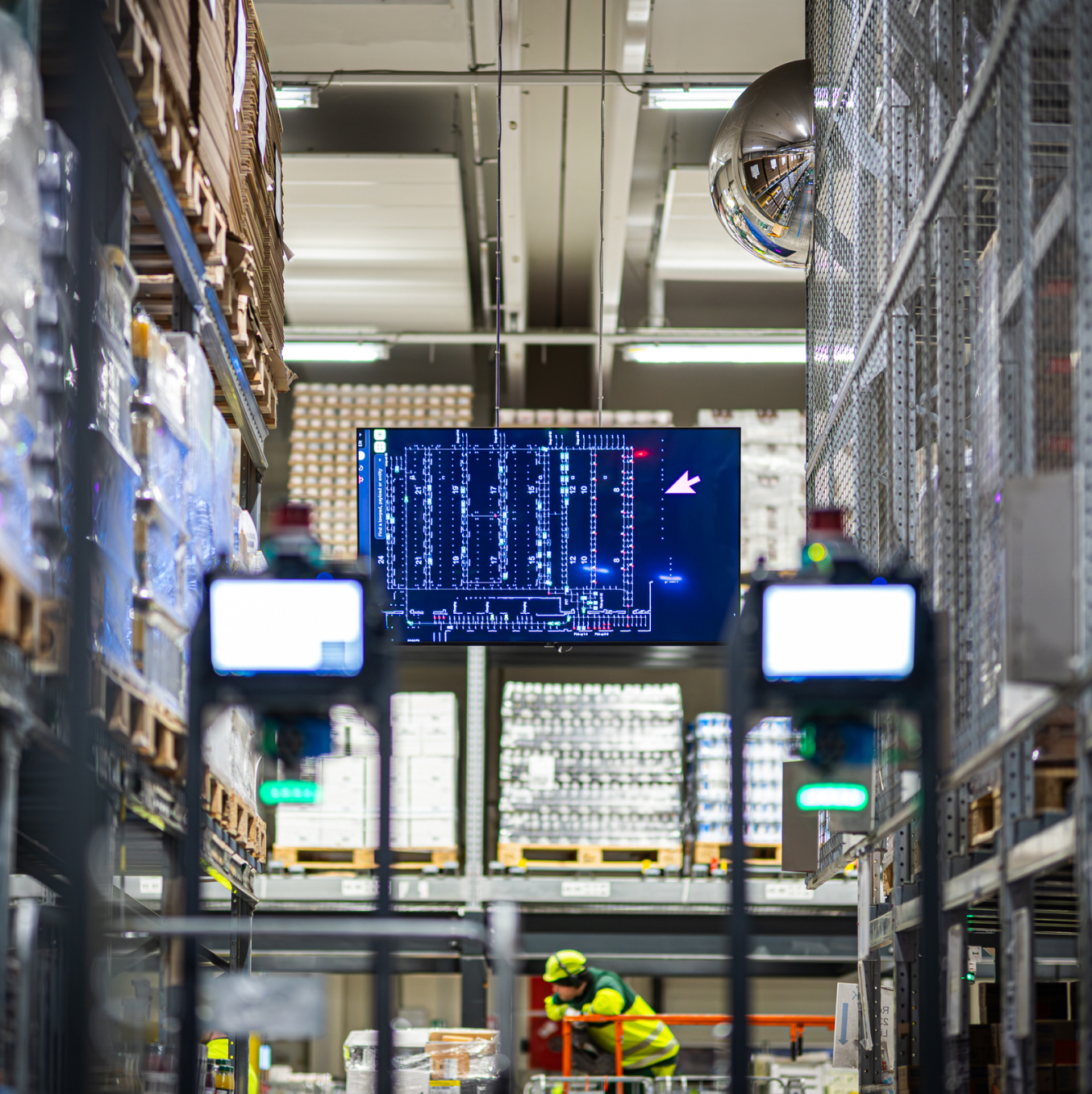 Pickers can pick from any nearby roll cage or pallet within their zone. If the next pick is close, they continue with the same load carrier. If demand shifts, they are guided to another pick location where another Lowpad AMR is already positioned. This creates density, reduces idle time and keeps picking flows moving.